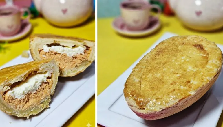 Na casa das panetones paranaenses, nem só de doces é feita a Páscoa. As confeiteiras também apostaram em uma versão que foge do convencional: o Ovo de Empadão de Frango com Catupiry (aproximadamente 500g). Uma receita que carrega a tradição familiar, com massa leve e recheio generoso.