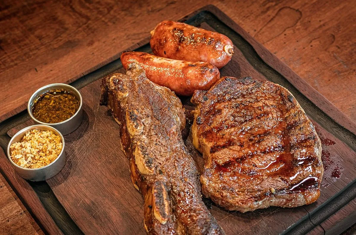 No menu do Cantuca, um dos destaques é a Tábua Braserito (R$ 170), que leva aproximadamente 300g de bife ancho, 300g de matambrito, 150g de linguiça de pernil, pão de alho da casa e batata frita palito ou legumada na brasa. Tem também a Tábua Cantuca (R$ 224), que traz aproximadamente 300g de bife ancho, 500g de cupim, galeto e linguiça de pernil.
