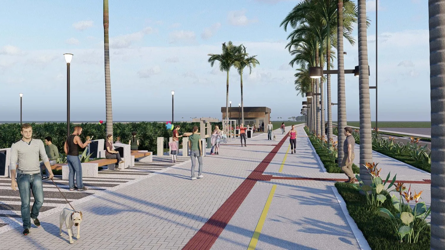 A faixa próxima à areia da praia vai ganhar novo calçamento, pista para corrida, ciclovia, quiosques, lounges urbanos, sinalização horizontal e vertical, passarela para pedestres e dispositivos de acessibilidade.