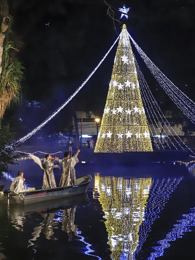 O Passeio Público, recebe a programação natalina com auto de Natal na Ilha dos Poetas, com árvore de Natal de 11 metros e portais iluminados. Atração nesta segunda-feira, a partir das 19h30.